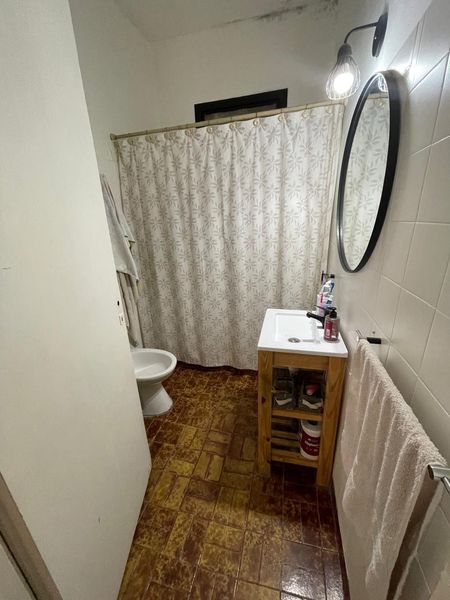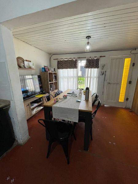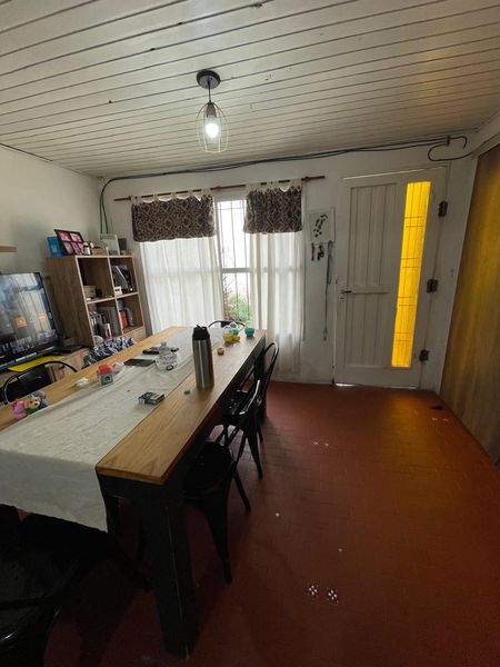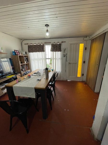 La casa cuenta con un jardín al frente, Al ingresar, se encuentra el comedor, seguido de la cocina. La propiedad tiene dos habitaciones, una con ventana al patio delantero y otra con ventana al patio trasero. También cuenta con dos baños. En el patio trasero grande. Tiene un pequeño galpón para guardar cosas y un garaje cubierto. La casa es práctica y funcional, ideal para aquellos que buscan un espacio cómodo y bien distribuido.